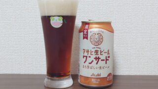 今回はアサヒ生ビールのマルエフの限定品「アサヒ生ビール マルエフ ワンサード」をレビューしていきたいと思います。色は濃い目の琥珀色、濃厚ですね。まさに黒ビールがブレンドされた色味となっております。茶色い泡もしっかり多めですね。香りは麦芽の甘みと香ばしさが両立しており、黒ビールらしさを感じます。ただ黒ビールよりはマイルドで飲みやすそうな印象を受けます。味わいは、香りと同じく黒ビール独特の苦味と甘みがありますが、程よくマイルドになっていますね。それでいて味わいがしっかりで飲み応えがありますので、しっかり美味しいです。この2:1のブレンド比率が良いですね。ビールのブレンドでは黄金比になるのでしょうか。これは他のシリーズのビールでも、黒ビールがラインナップされているものであれば、2:1でブレンドしてみても面白いかと思いました。