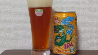 今回はエチゴビールの「ダブルドラゴン IPA」をレビューしていきます。色は濃いめの琥珀色、泡も茶色がかっていますね。泡立ちも良くいい感じです。香りは甘いグレープフルーツがしっかりですね。グラスに注いだだけで、香りが感じられます。とてもジューシーな香りです。味わいは、まず強烈な苦味のインパクトがすごいですね。しっかりガツンときます。苦味の効いたグレープフルーツですね。余韻にもしっかり苦味を感じます。しかしその奥にホップの華やかさもありますので、とても飲み応えもあり、美味しいビールです。